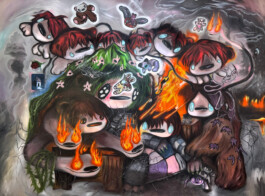 “TEMPLE FAIR” is a fantastical reimagining of the traditional Thai temple fair, where nostalgia, myth, and chaos converge inside a digitally constructed dreamscape. The piece unfolds across a hybrid terrain of painting, 3D animation, and interactive game environments transforming the digital space itself into a dynamic storytelling platform.